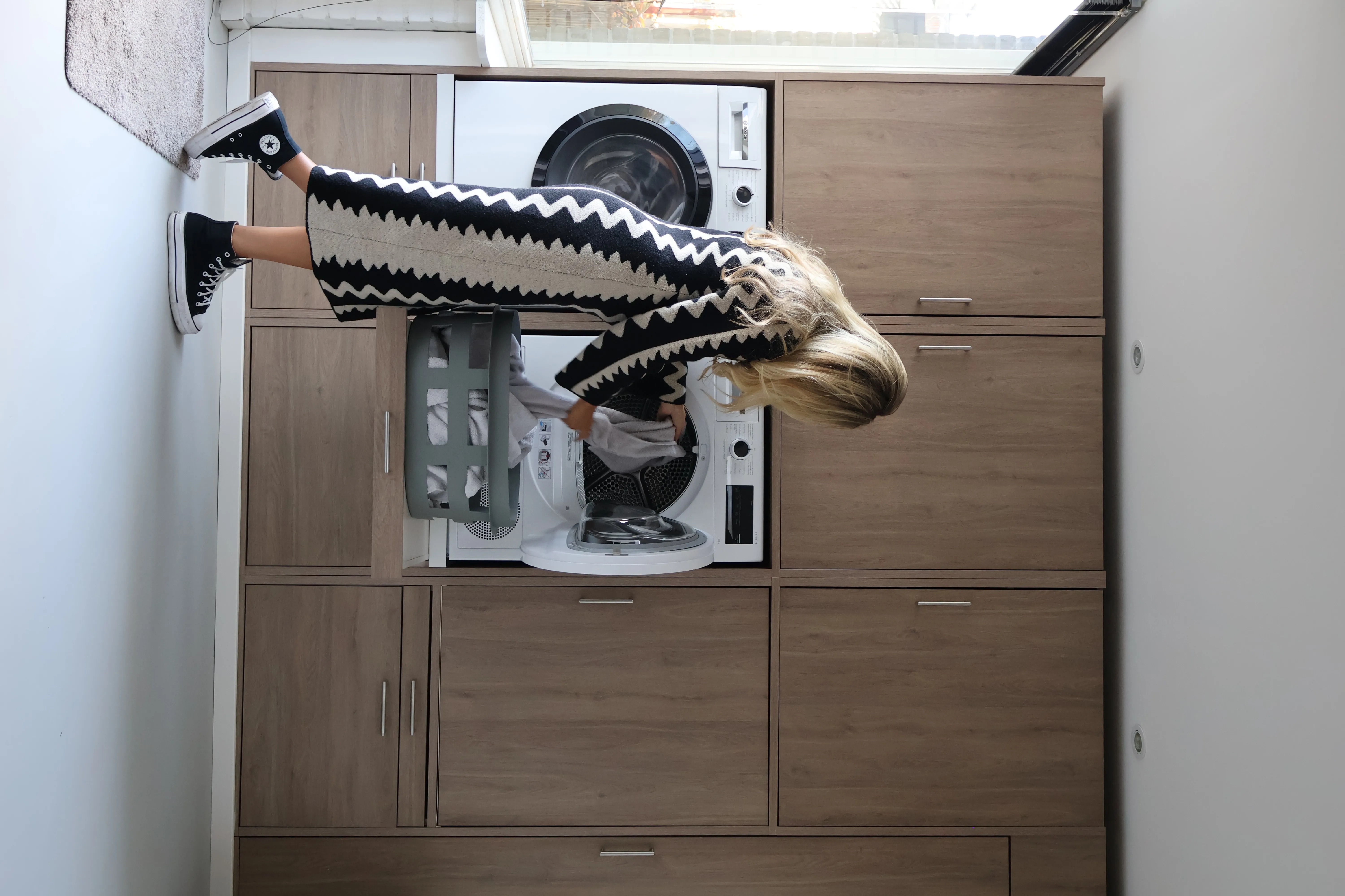 Haar favoriete aspect? "Dat alles netjes uit het zicht is. Geen losse flessen wasmiddel of handdoeken meer, maar gewoon een strak geheel. “En stiekem vind ik het ook heerlijk dat het er zó fotogeniek uitziet," lacht ze.